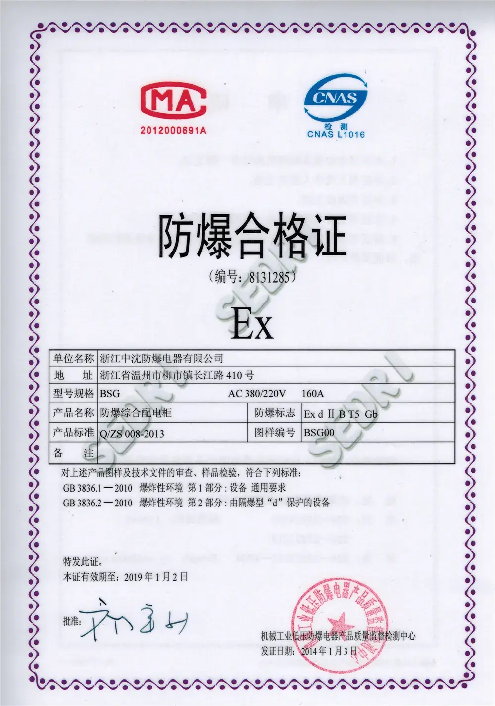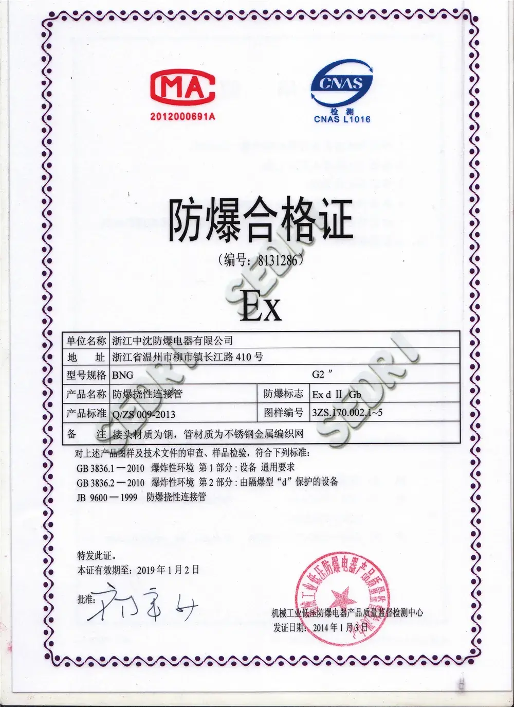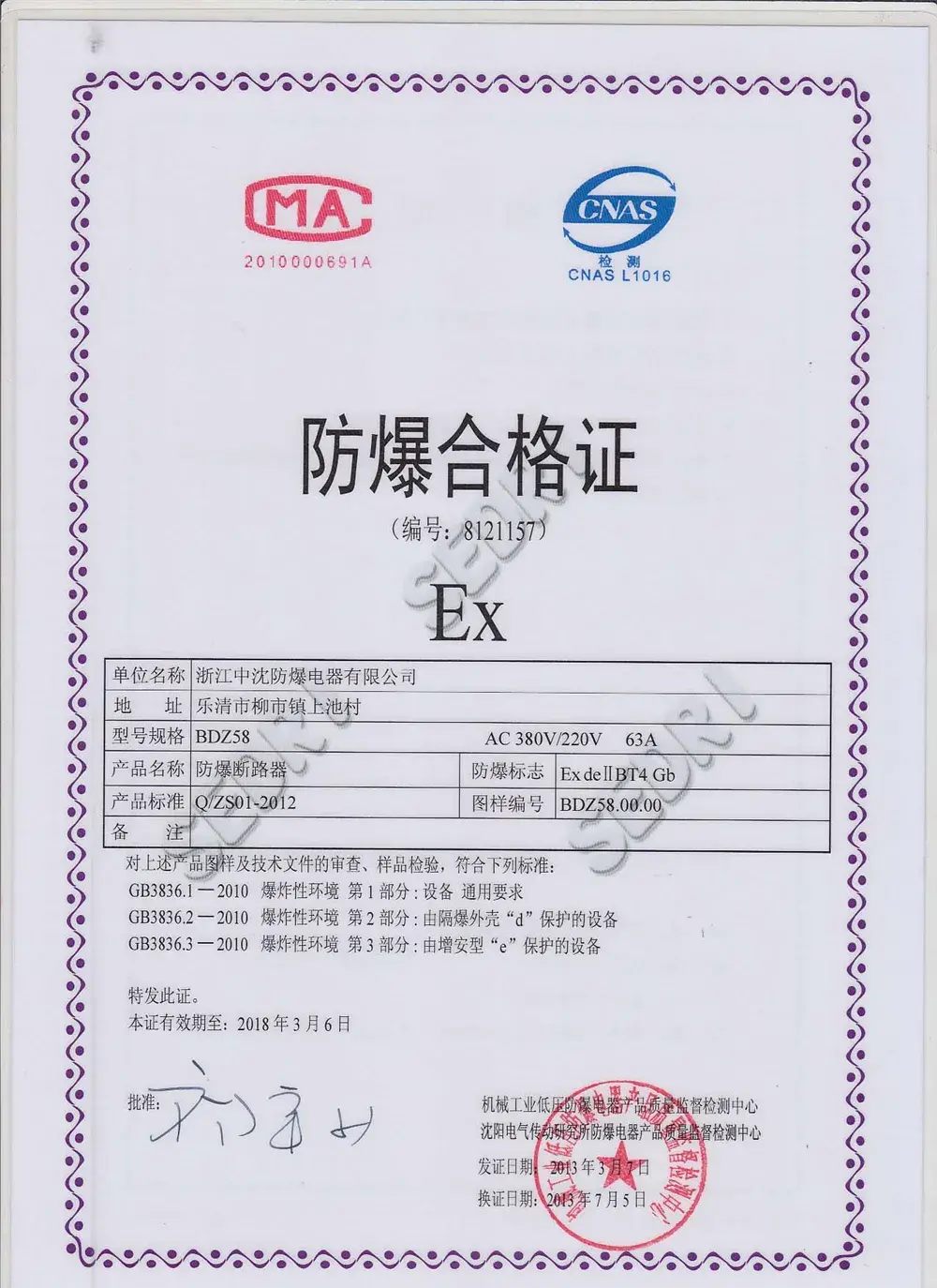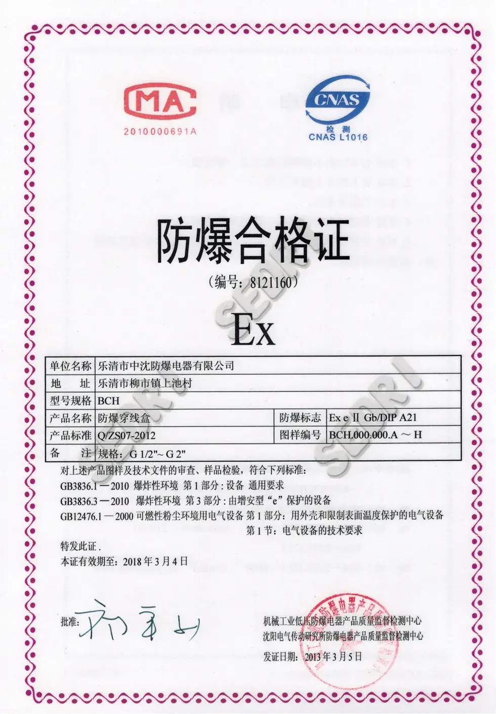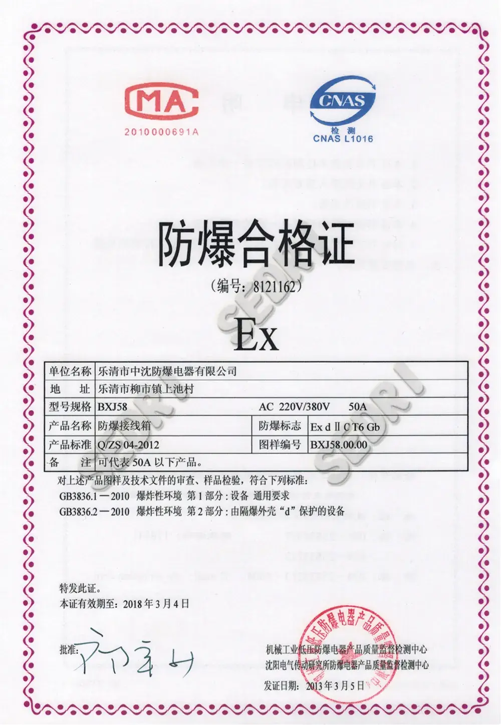 BXJ58 Explosion-Proof Junction Box certification